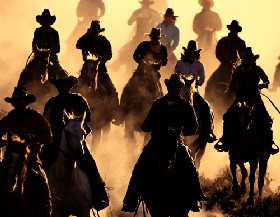 Propeller planes are Texans, Cats are Bengals, SUV's are Jeep Patriots, Comic book cover is of the Teen Titans, Helicopters are Seahawks, The 80's hair band is Steeler(s), The beers are Brown(s) ales, The hikers are backpackers, the Jets fighters are Buccaneers, the painting is All Saints Day, the comic book girl is Raven(s) (a member of the Teen Titans BTW), the revolvers are Colts, the horsemen are North Dakota Cowboys, the cars are Dodge Chargers, the guys with bird heads is the album "The Else" by They Might be Giants, The LARPers are dressed as Vikings